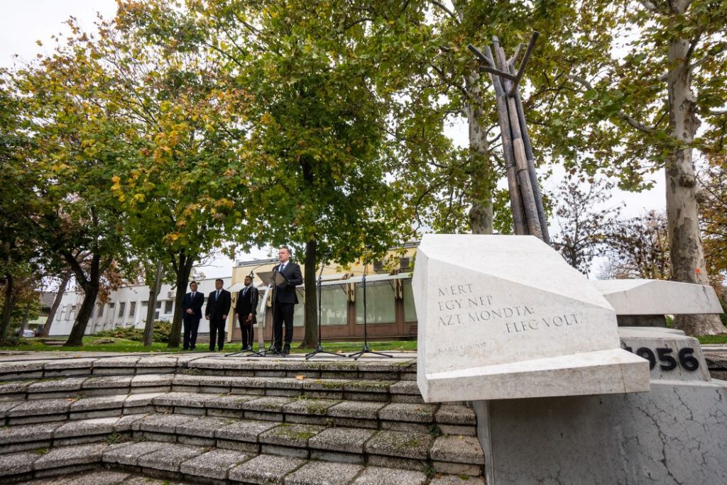 Kiemelte, hogy miközben emlékezünk, kell, hogy emlékeztessük magunkat is, melyhez a költő gondolatai segítségünkre lehetnek, mikor arról beszél, hogy Ady Endre kérdésére évtizedekkel később az ’56-os ifjak adnak igaz és tiszta választ. – Igen, emlékeztetnünk kell magunkat, hogy a ma bátorsága a jövő boldogsága, a ma gyávasága a jövő pusztulása lehet. És mindez különösen fontos napjainkban, mikor veszélyes, zavaros és kiszámíthatatlan napokat élünk. Amikor semmire nincs nagyobb szükség, mint tiszta fejre, bátor szívre, hazaszeretetre és a béke iránti feltétlen elköteleződésre. Igen, a ma hibáit gyermekeink és unokáink is élni és hordozni fogják – hangsúlyozta.