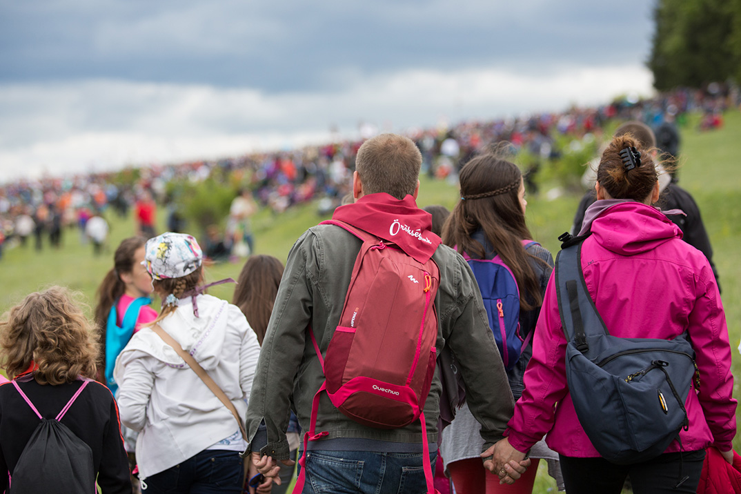 – Csodálatos természeti környezetben, fantasztikus fényviszonyok között, nagyon segítőkész emberek, gyerekek részvételével dolgoztunk – mondta. Azt is hozzáfűzte, hogy ezek a feltételek jellemzőek voltak az egész út során. Csíksomlyó – ahol ezúttal is százezrek gyűltek össze – szintén különleges élményt nyújtott. Ahogy a drón egyre magasabbra emelkedett, a monitoron nyomon követhették a készülő felvételeket, s a nyeregben összegyűlt emberek ezreit, a szélben lobogó zászlókat. Arról már Vida Tünde, a mozgalom elindítója beszélt, hogy ezt az élményt fokozta, hogy Kézdivásárhelyről Kelemen Éva, a mozgalom ottani nagykövete szervezésében háromszázan – gyermekek és szülők – Gyulai István szerzeményét énekelve, Örökségünk feliratú kendőt viselve érkeztek a búcsúhelyre, ahol el is hangzott, hogy Paks és Kézdivásárhely háromszáz fős küldöttséggel jelent meg az Örökségünk mozgalom képviseletében.