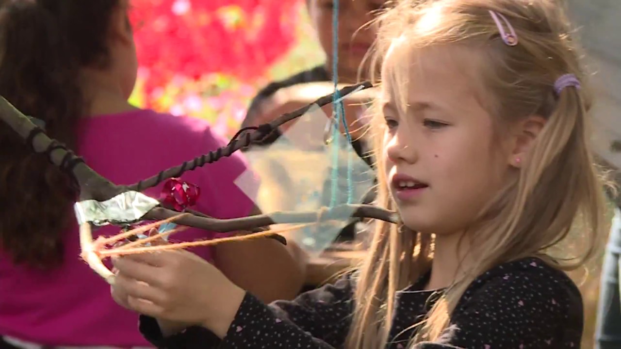Szarkafészket készítettek a gyermekek csillogó és színes anyagokból a Paksi Képtár Köztéri akció elnevezésű programján. A tér-látást fejlesztő foglakozást idén a Nemzeti Galéria GYIK műhelye vezette.
