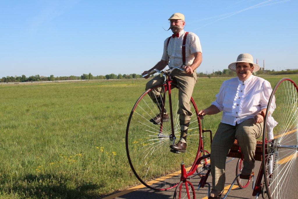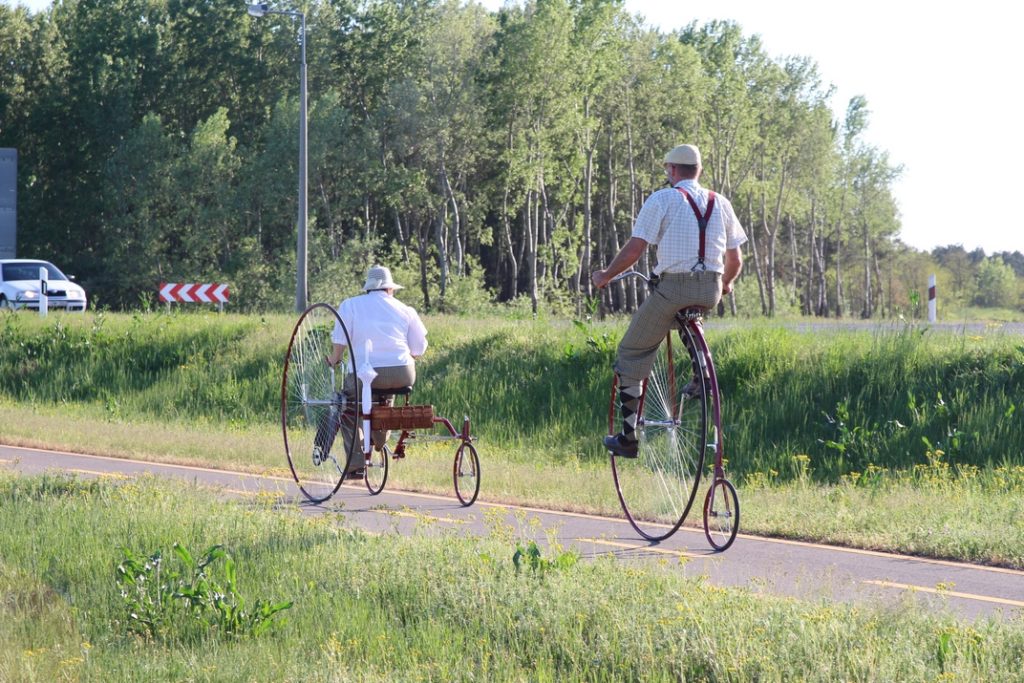 A velocipédezés sem egyszerű műfaj, nincs állítási lehetőség, nincs sebváltó. – Direkthajtású, nagyon komoly erőfeszítésre van szükség, hogy akár egy enyhe emelkedőre felmenjünk – mondja Magdi. István hozzáteszi, hogy Magdiéra legalább lehetett féket tenni, az övére nem, így, ha lejtőn lefelé gurul, szorgalmasan kell hátrafelé tekernie. Míg a női változaton kifejezetten kényelmesen helyet lehet foglalni, addig a férfiaknak nincs egyszerű dolguk a nyeregbe szállással.