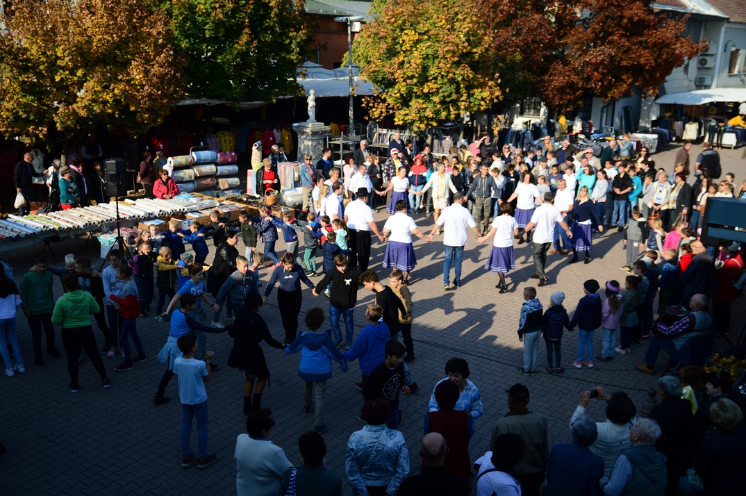 В прошлую пятницу появилась «мгновенная толпа» танцевальной группы «Ассоциации немецкого национального меньшинства Пакша» – на рынке. Танцевали они 15 минут с целью привлечь внимание людей к швабским танцам. Конечно флешмоб удивил всех, кто прошел мимо, набралась настоящая толпа. В танцы были вовлечены дети, школьники – не секрет, целью флешмоба было тоже: вызывать интерес присоединиться к сообществу. «Вербовка» касается особенно молодых, планируют создать молодежную и детскую группу, считая, что танец полезен для детей, для молодежи.