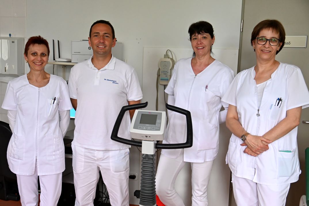 Arról is beszélt, hogy a jól és korszerűen felszerelt rendelőben szakmailag magasan képzett asszisztensek segítik a munkát, nevezetesen Kelpné Argat Mónika kardiológiai szakasszisztens, Meixner Gabriella kardiológiai szakasszisztens és Pataki Gáborné Kati asszisztens. – Évek óta itt dolgoznak, nagyon rutinosak, pontosan, megbízhatóan végzik a feladataikat, így minden flottul megy a szakrendelésen – húzta alá dr. Domonyai István.