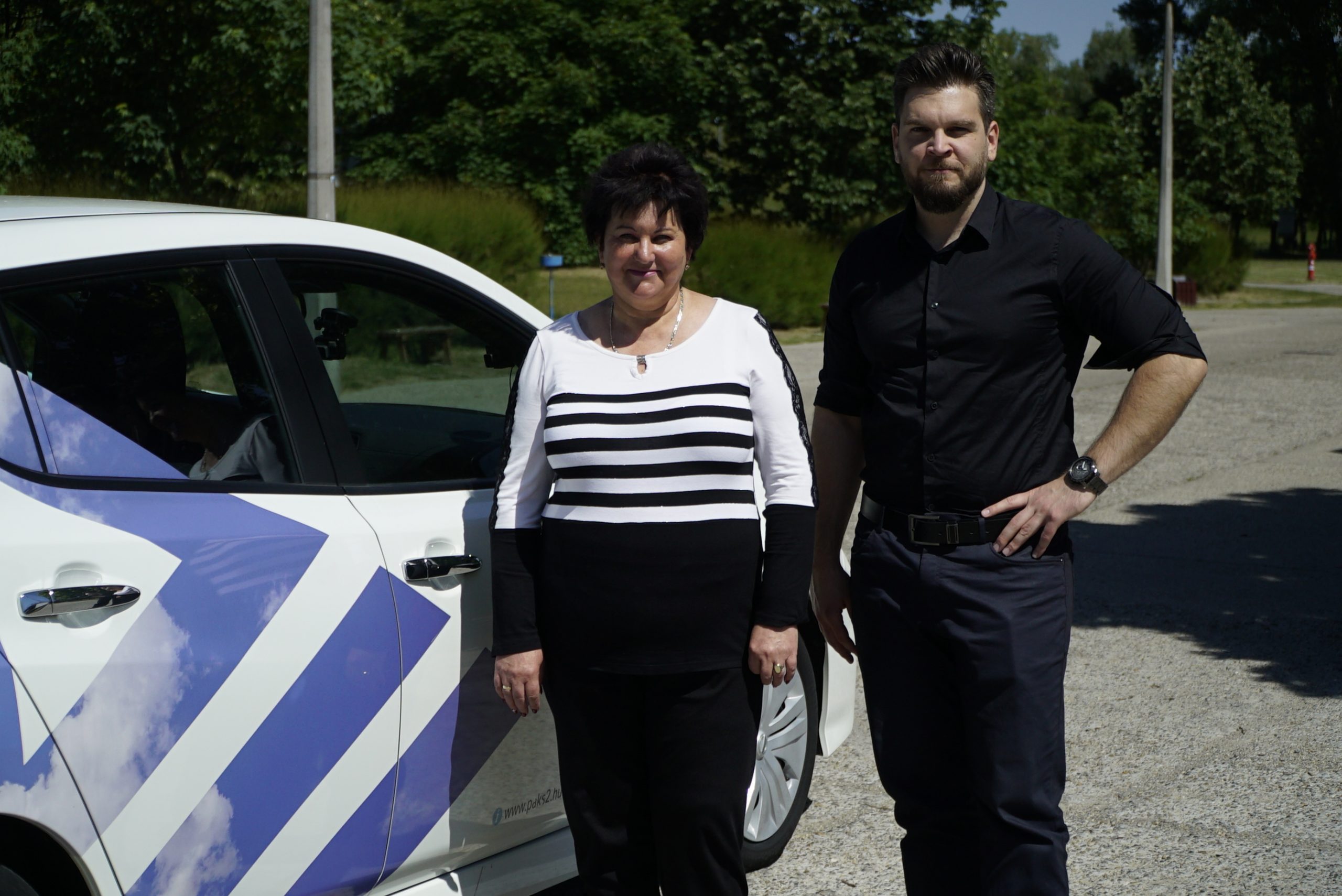 Újra úton az E-Taxi. A jobb egyben ezúttal Seregély Erzsébet, a DC Dunakom Zrt. Parkfenntartási részlegvezetője ül.