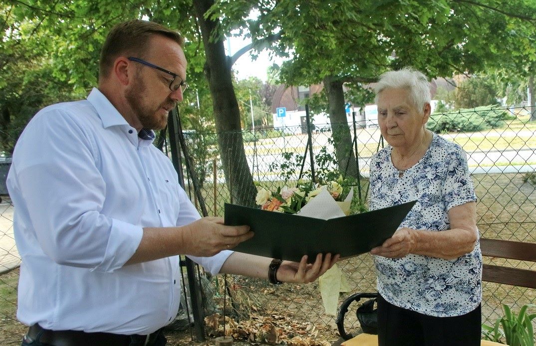 Benedeczky Ferencnét köszöntötte Szabó Péter polgármester az önkormányzat nevében a Paksi Életfa Idősek Otthonában. Benedeczky Ferencné, született Heiszler Mária Magdolna Pakson született 1931. július 11-én. A Kosár utcában laktak, szülei nyolc gyermeket neveltek fel, akik közül már csak Marika néni él. Édesapja vízimolnár volt, saját hajómalmuk volt a Dunán a két világháború között. Miután 1945 után eltűntek a hajómalmok, átalakult a malomipar, váltottak, és saját földjeiken gazdálkodtak a téeszesítésig. Édesanyját korán elveszítette, a testvérek egymást segítették. Marika néni Szekszárdon a Ruhaipari Szövetkezetnél kezdett dolgozni, majd később a műszergyár alkatrészeket gyártó helyi műhelyében. Férje, Benedeczky Ferenc a szekszárdi postánál dolgozott karbantartó, telefonszerelő munkakörben. Marika néni 1991-ben ment nyugdíjba, majd miután férje 2009-ben elhunyt egyedül élt, végül beköltözött az Életfa Idősek Otthonába, melynek már több mint három éve lakója. Két fiúk született, négy unokája, nyolc dédunokája és két ükunokája van. Az idősek otthonában minden ellátást megkap, gyermekei, unokái látogatják. Szívesen nézi a televízióban a híreket és sorozatokat, szeret olvasni, illetve szívesen részt vesz az intézményi foglalkozásokon. A járás már nehezebben megy, de egészségileg szerencsésnek érzi magát, mert elkerülték a komoly betegségek.