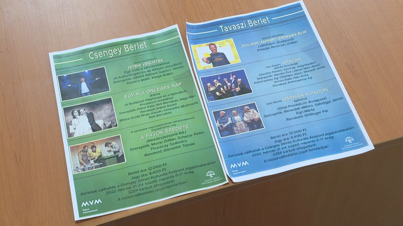Ismét színházi előadásokkal készül a Csengey Dénes Kulturális Központ. Az intézmény 2022 tavaszára kettő bérletet is kínál, amelyek három-három előadást tartalmaznak. A klasszikus és formabontó darabok egyaránt helyet kaptak a bérletekben.