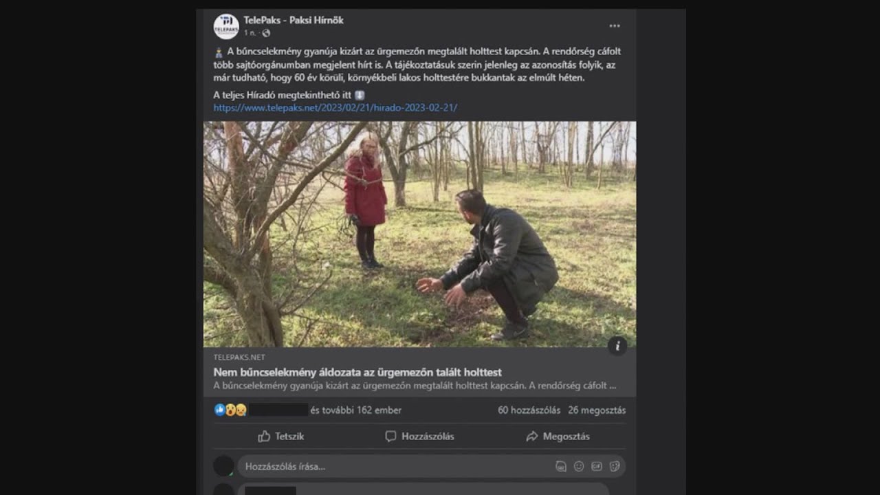 Nagy a szenzációigénye az internetezőknek egy általunk megkérdezett szakpszichológus szerint, ezért kereshetnek a hozzászólásokban darabolós, szabadlábon lévő gyilkost, a napokban megtalált holttest kapcsán. Pedig az idegenkezűséget és bűncselekményt kizárta a rendőrség. Kitanics Márk a kommentdömping kapcsán úgy fogalmazott, az álhírek világában elveszhetett az objektivitás, de ugyanilyen tényező lehet az információ terjedésének sajátossága is, ami sok hibával járhat együtt.