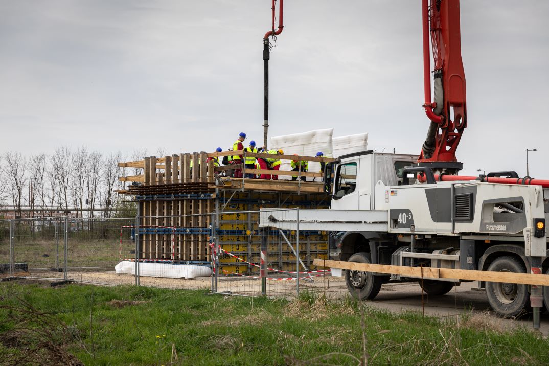 A mock-up tesztet megelőzően már készült egy kisebb, 3×3 méteres pre-mock-up betontömb is az esetleges hibák, hiányosságok feltárására.