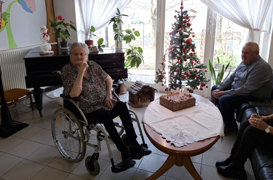 Plek Istvánnét köszöntötte 90. születésnapja alkalmából Barnabás István alpolgármester és Mezősi Árpád képviselő az önkormányzat nevében a Paksi Életfa Idősek Otthonában. Plek Istvánné (Kecskeméti Vilma) 1934. december 12-én született Tolnanémediben. Heten voltak testvérek, hat lány és egy fiú, Vilma néni másodikként született a családba. Az általános iskola hat osztályát Tolnanémediben végezte. Édesanyja bénulása miatt hamar munkába kellett állnia, sőt a kisebb testvéreit is gondozta, és a házimunka javát is ő végezte, mert a nővére csípőficammal született. A kendergyárban ismerkedett meg Plek Istvánnal, akivel 1954-ben kötöttek házasságot. Később Pálfán a gyermekotthonban helyezkedett el. Vilma néni munka mellett tanult tovább, szociális-egészségügyi területen szakképesítést szerzett. Ötvenöt éves korában ment nyugdíjba a pálfai Tölgyfa Otthonból. Három gyermeke után hat unokája van, minden gyermekénél egy fiú és egy lány, és lánya, Rózsika után négy dédunoka, három fiú egy lány is van a családban. Az ünnepelt szabadidejében sokat kötött a családnak, minden karácsonyra kaptak az unokák pulcsit, amit ő készített. Minden hétvégén megsütötte a kedvenc sütijüket, elkészítette a kedvenc ételüket, így várta őket, sokat látogatták. Férjét 2018-ban vesztette le, rövid ideig még egyedül élt, aztán a sok betegeskedés miatt 2019-ben beköltözött a paksi idősek otthonába. Testvérei közül a nővére, az öccse és egy húga már elhunyt. Az Életfa otthonban dolgozik egyik unokája, Nikoletta.
