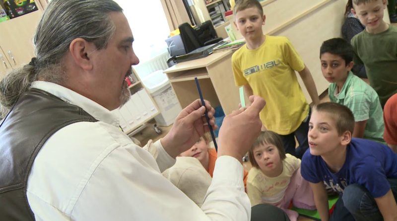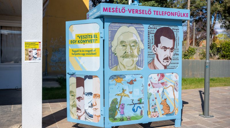 Mesélő-verselő telefonfülke az Atom téren