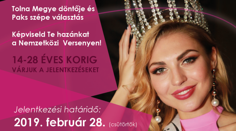 TovábbIsmét keresik Tolna megye és Paks szépét a Nemzetközi Miss Alpok-Adria szépségverseny keretében. A szervező Csillag Show-tánc Egyesület 14-28 éves lányok nevezését várja 2019. február 28-ig…